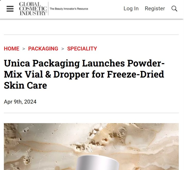 我们非常高兴地与大家分享,我们创新研发的粉末复溶滴管,已在化妆品领域的国际权威杂志《Global Cosmetic Industry》中获得关注,标志着我们的产品在行业内得到了国际性的认可。